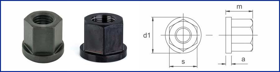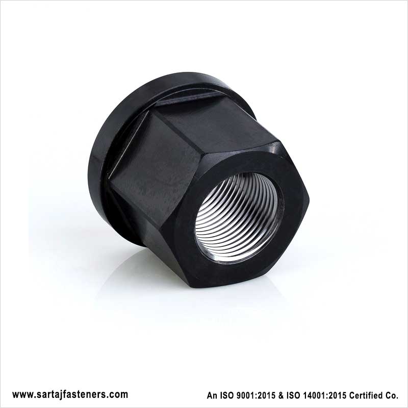 Collar Nuts are also known as Flanged or Flange Nut with Collar or integral washer. These are Quality nuts that are turned, milled, and blacked. They are undergoing heat treatment for strength purposes. Collar nuts are a one-piece part that embodies a collar that acts as a fixed washer.
