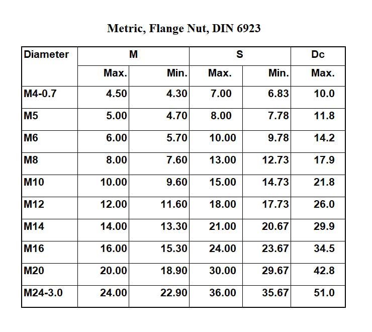 DIN 6923 Flange Nuts have a circular washer like flange shaped base that increases the weight bearing surface area to distribute the load over a greater area when tightened.