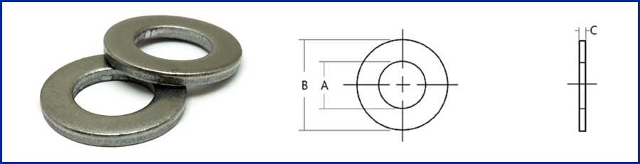 DIN 125 A Flat Washers, without chamfer, are a slender circle with a concentric opening and are perhaps the most well known level washer. When set under a nut or the top of a screw, the washer expands the bearing surface region and thusly disperses the cinching power over a bigger region.
