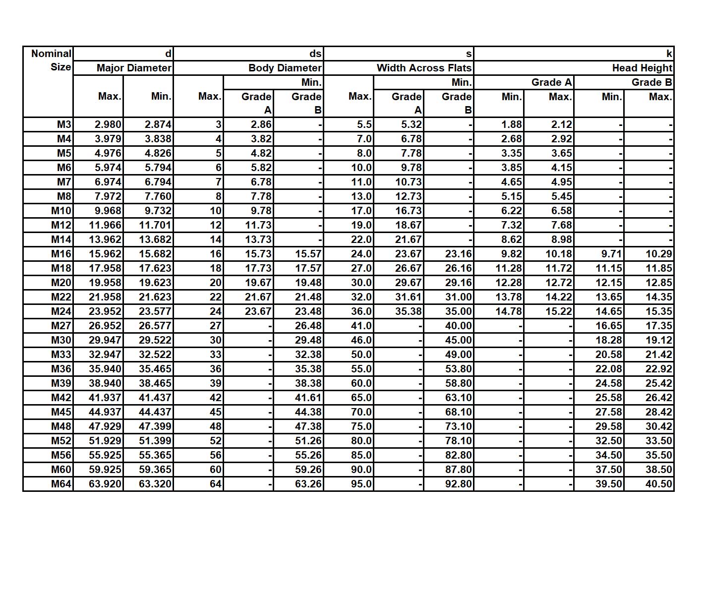 4.6/4.8,5.6/5.8, 6.8, 8.8, 10.9, 12.9 GR.2, GR.5, GR.8 |