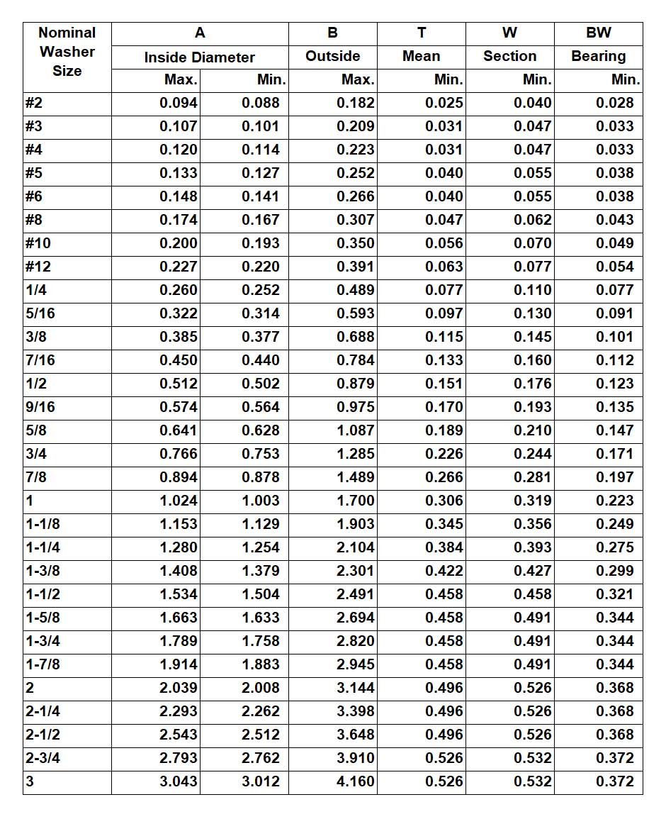 #2-#12, 1/4, 5/16, 3/8, 7/16, 1/2, 9/116, 5/8, 3/4, 7/8, 1, 1-1/8, 1-1/4, 1-3/8, 1-1/2, 1-5/8, 1-3/4, 1-7/8, 2, 2-1/4, 2-1/2, 2-3/4, 3 |