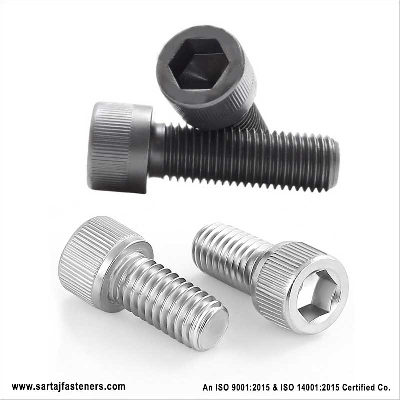 Socket head cap screws from Sartaj comply with the strictest industry standards for durability and strength. It is made of stainless steel, carbon steel or alloy steel making it corrosion resistant. An internal hex drive is usually used for its installation on surfaces. The clamped parts get their support from stretching the screws to handle the external forces faced by it. It allows these screws to handle the pre-load placed on it efficiently without any strain. They provide you with the highest fatigue resistance if they are tightened to their respective torque figure.