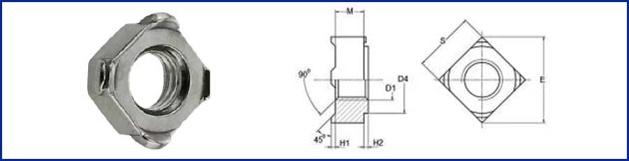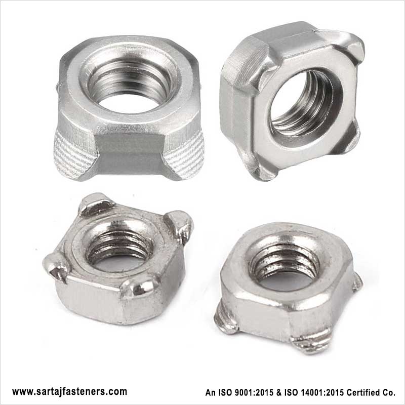 Square weld nuts from Sartaj have four small projections in their back ends to facilitate their welding on to the surface of other metals. The most significant advantage of using these nuts is that they can be welded into even imperfect and irregular surfaces without losing their balance. They come with a pilot hole using which fasteners can be inserted. The pilot hole is used for precision feeding of fasteners, allowing them to be inserted quickly and accurately on the metal. These nuts are used in automobile and other industrial applications. The projections allow for precision seating of the fastener as well.